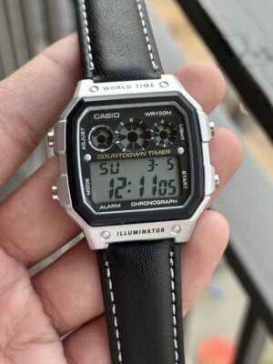 ALL CHRONO WORKING METAL DIAL LEATHER BELT